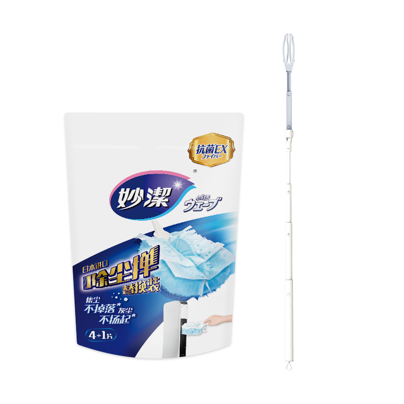 妙洁(MIAOJIE)妙洁除尘掸长柄+5片替换装 可伸缩 鸡毛掸子扫灰家用车用