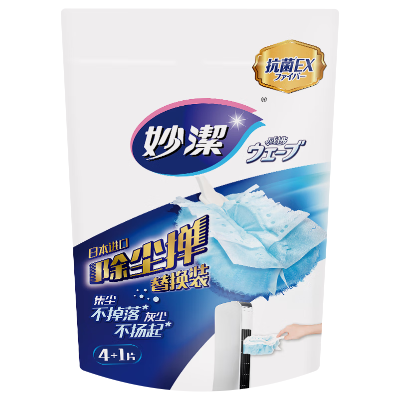 妙洁除尘掸 家务用清洁汽车扫灰鸡毛掸子不掉毛带替换装静电除灰尘 【长短两用】长柄1个+替换头5片