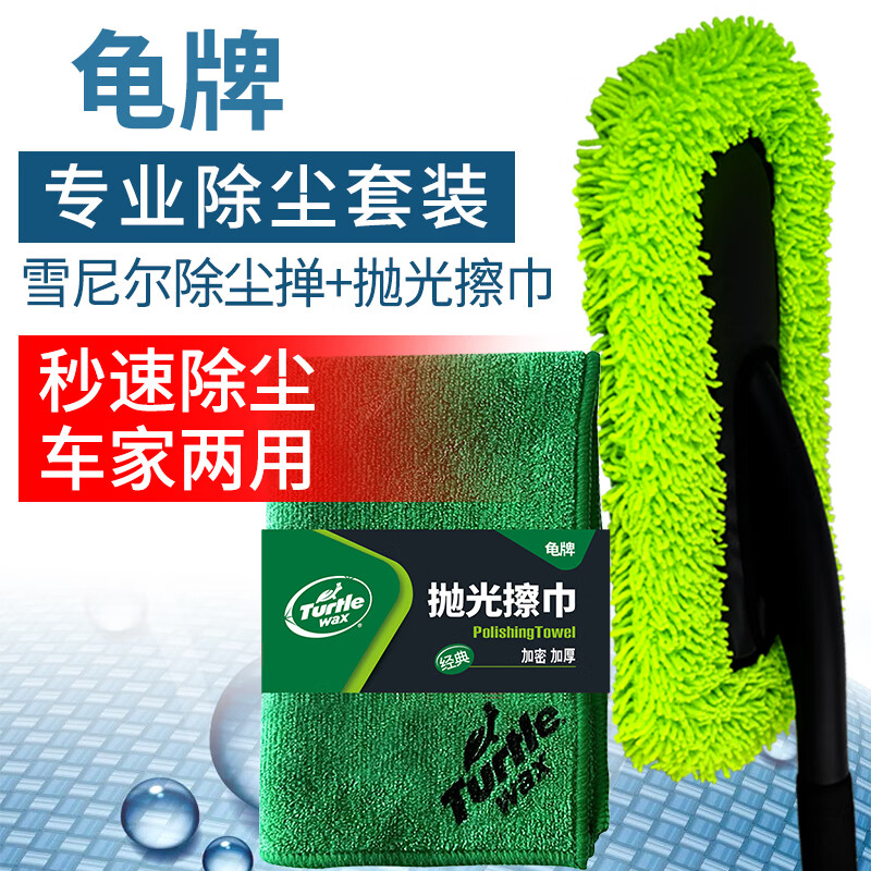 龟牌(Turtle Wax)雪尼尔除尘掸子蜡刷汽车洗车毛巾拖把刷子车掸蜡拖工具TW-184 【除尘1+1】除尘掸+抛光擦巾