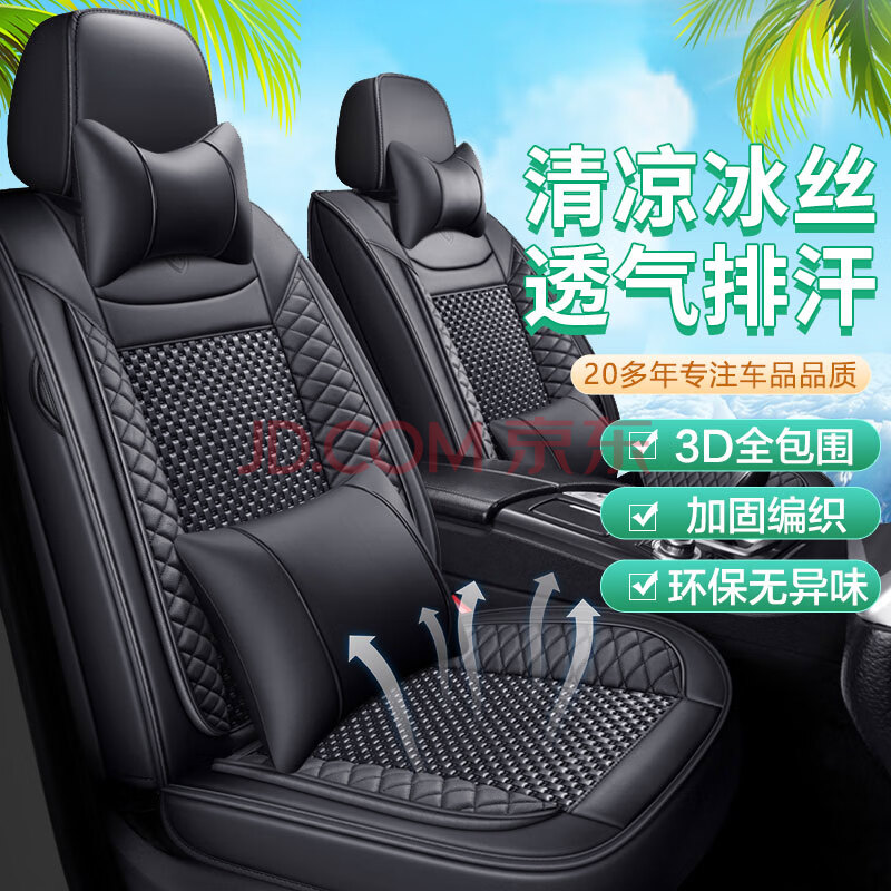 紫风铃冰丝汽车座套夏季全包围汽车坐垫座垫四季通用迈腾朗逸探岳速腾 【3D全包围】神秘黑-豪华版 五座通用