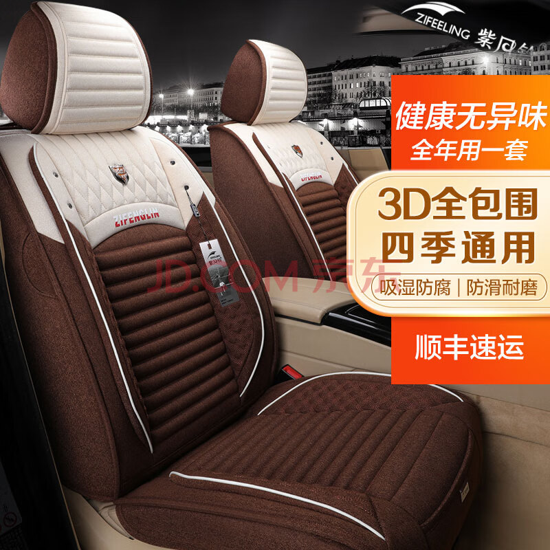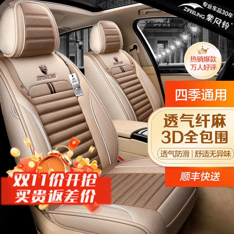 紫风铃亚麻汽车坐垫夏季透气座垫四季通用马鞍垫适用于星越L迈腾速腾H6 标准版-尊贵咖 五座通用
