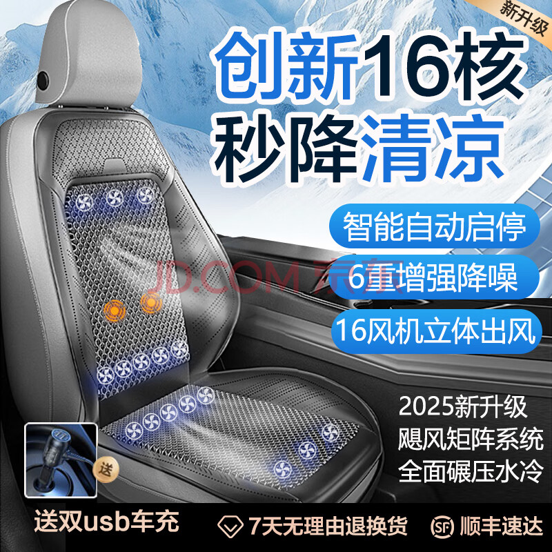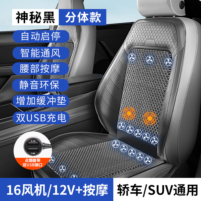 紫风铃通风汽车坐垫夏季座椅通风车载吹吸风凉垫按摩单座16风机座垫hlb 分体【黑色-通风+按摩单座】 强劲风力 自动启停