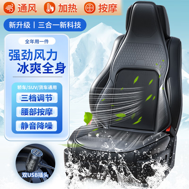 紫风铃汽车通风坐垫夏季汽车座椅通风坐垫按摩加热三合一车载通风座垫