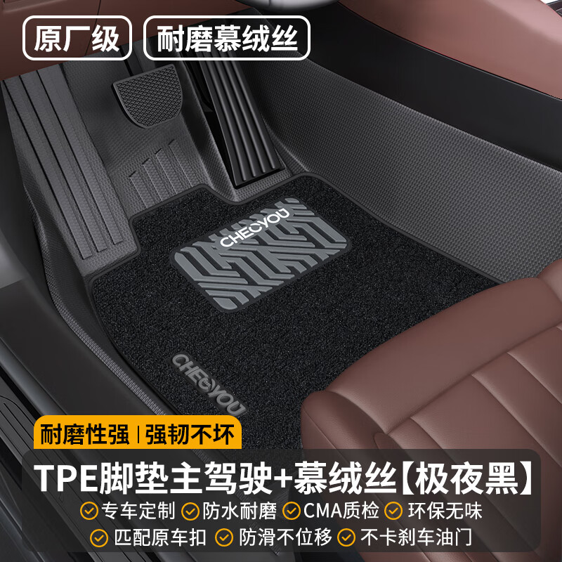 车丽友 专用于tpe汽车脚垫全大包围单主驾驶副驾驶前排后排汽车专用车垫 【主驾驶-慕绒丝】TPE脚垫+上层垫极夜黑 汽车通用专车定制(联系客服备注车型)