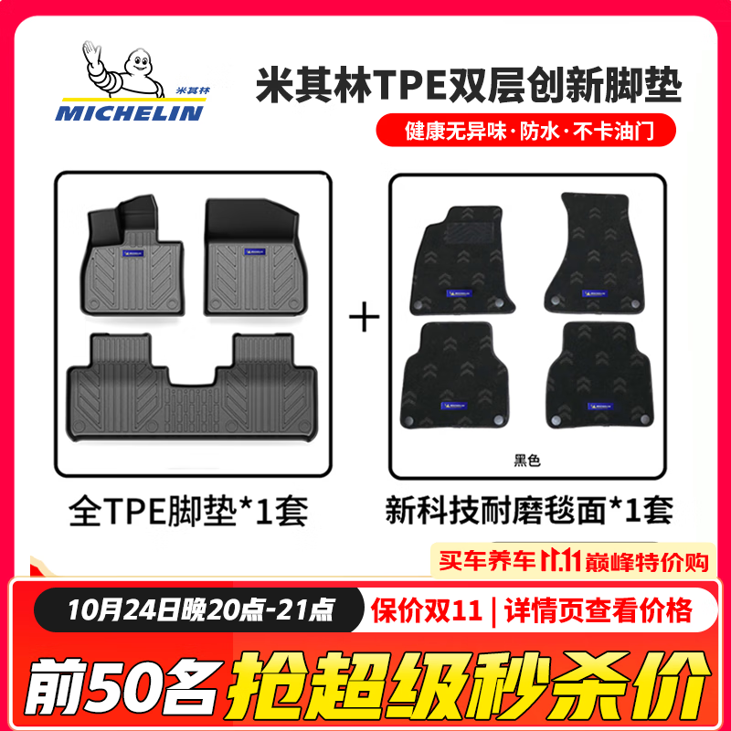 百亿补贴:米其林(MICHELIN)别克君越汽车脚垫适用昂科威/威朗/E4全TPE汽车脚垫环保专车专用 适用于别克E5 25年-至今 双层脚垫