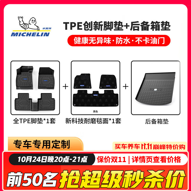 百亿补贴:米其林(MICHELIN)别克君越汽车脚垫适用昂科威/威朗/E4全TPE汽车脚垫环保专车专用 别克君越【23款-至今】双层脚垫+后备箱垫