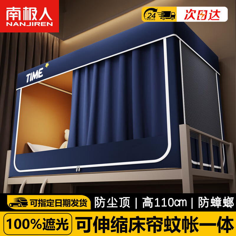 南极人(NanJiren)大学生宿舍床帘上下铺遮光蚊帐一体式全包围封闭单人寝室床幔支架 藏青【遮光防蚊 保护隐私】 90x190x110cm【上铺用】