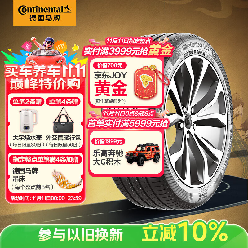 德国马牌(Continental)汽车轮胎 225/50R18 95V FR UC7 适配本田艾力绅/大众途岳