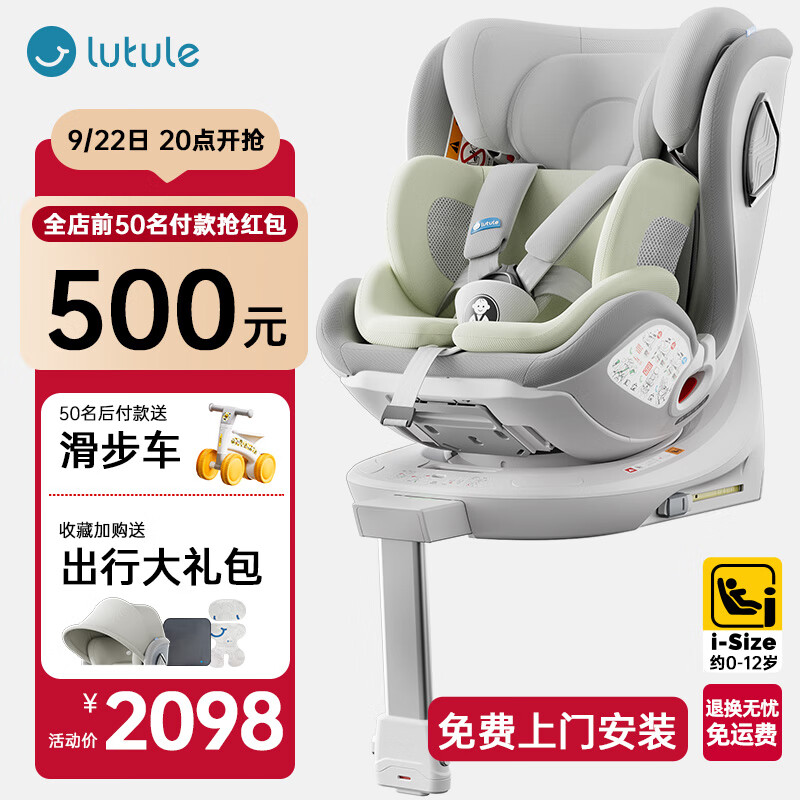 路途乐儿童安全座椅0–12岁全龄i-Size认证婴儿360度途跃pro粽野绿-智能