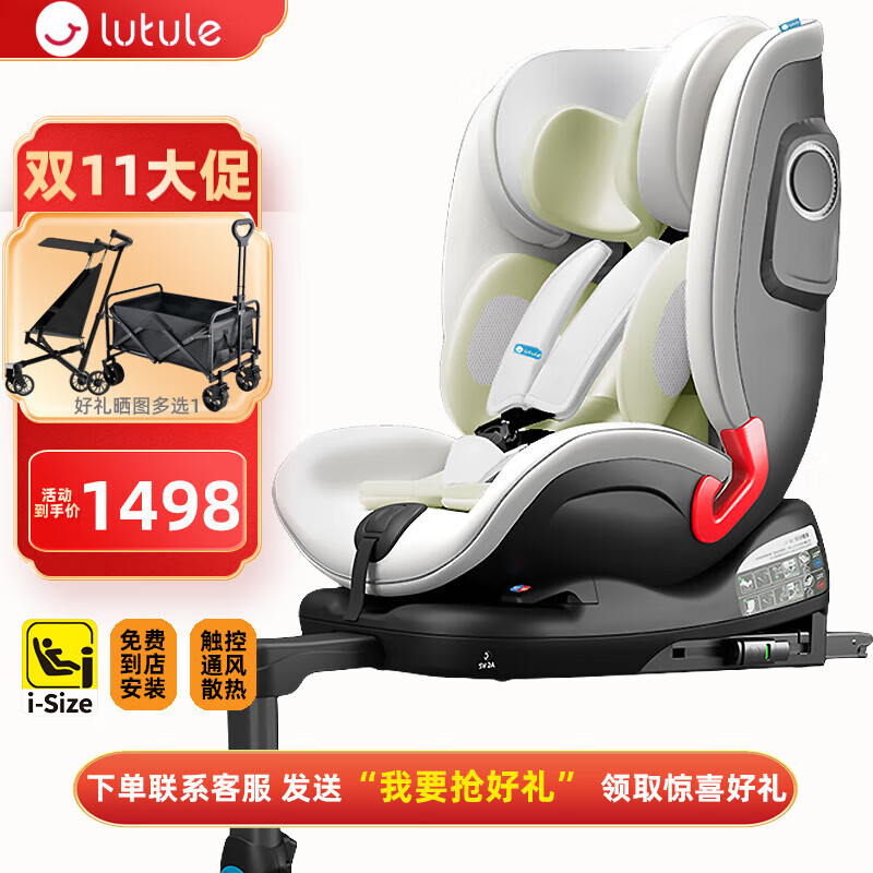 路途乐(lutule)儿童安全座椅汽车用婴儿车载0-4-12岁360旋转iSize 乐智棕野绿