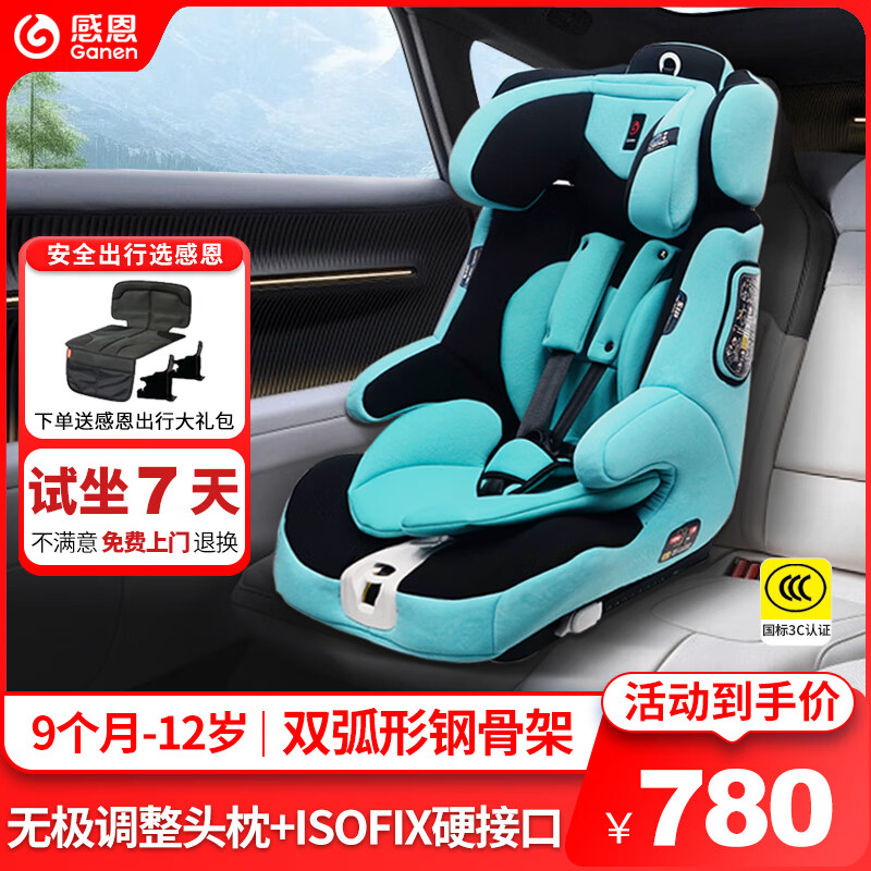 感恩【11.11特惠】儿童安全座椅0-7-12岁汽车用婴儿宝宝轻便安装 阿瑞斯-雨晶蓝