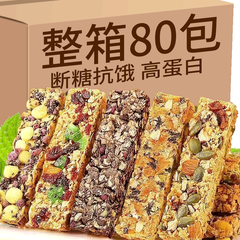 舸渡蛋白棒燕麦能量棒谷物棒代餐0无糖精减低高蛋白脂肪零食卡品 混合口味80包【买40包送40包】