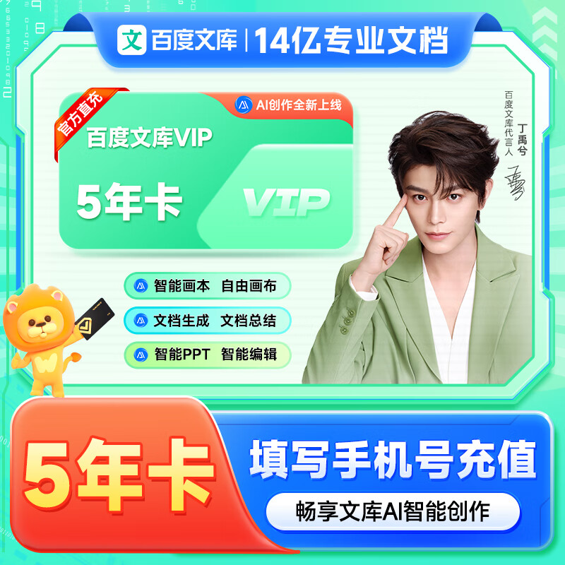 【自营】百度文库会员5年卡 买1年赠4年 AI智能创作【326】