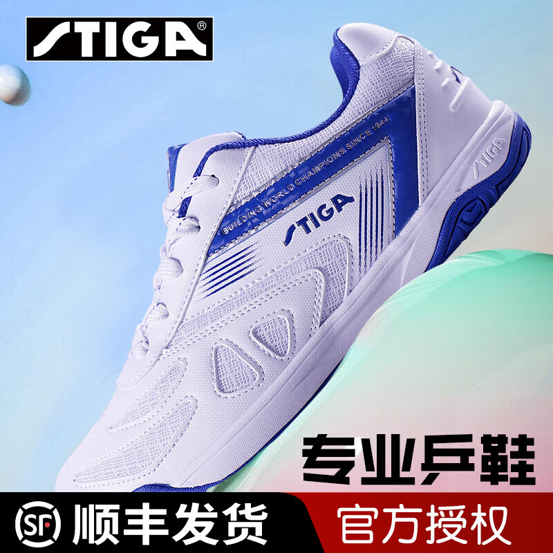 斯帝卡(Stiga)乒乓球鞋专业比赛训练鞋斯蒂卡男款耐磨防滑女鞋 白/蓝 (超透款) 42 (260mm) 鞋型偏窄,建议买大1码