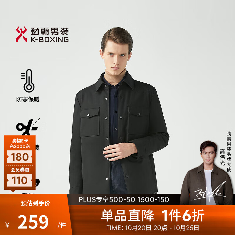 劲霸男装(K-Boxing)劲霸男装白鸭绒工装风时尚夹克轻薄衬衫羽绒服BRDG3101 黑色 L