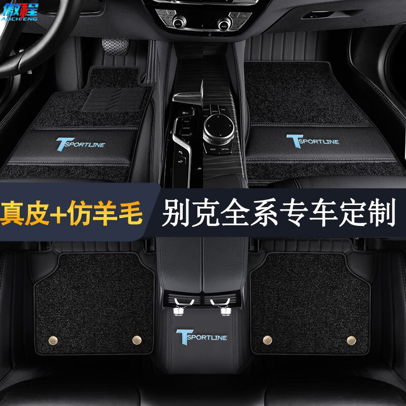 傲程适用别克君威真皮脚垫昂科威Plus英朗君越昂科旗昂科威全包围脚垫 神秘黑【真皮+仿羊毛】 别克君威定制