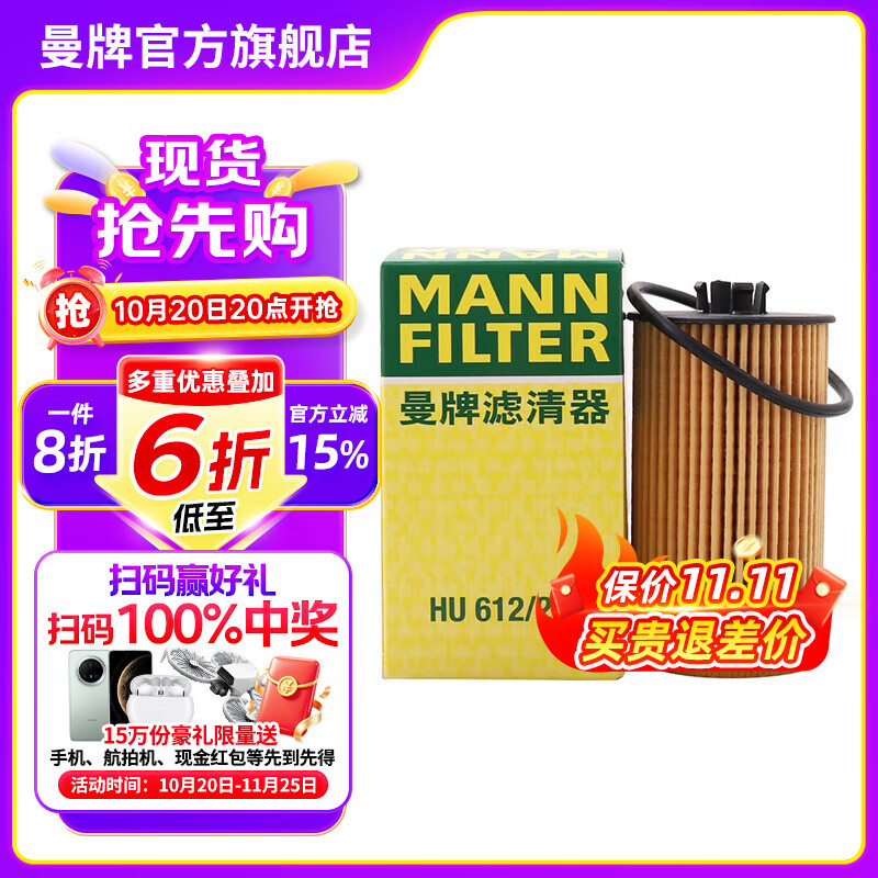 曼牌(MANNFILTER)HU612/2XM机油格滤芯适用于君威/科鲁兹/英朗/景程/迈锐宝/爱唯欧