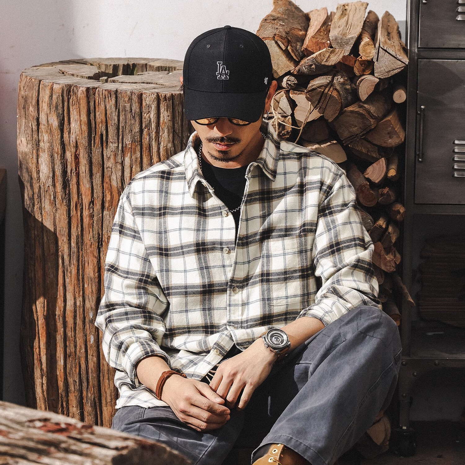 杰雷诺美式复古格子衬衫男长袖纯棉秋季2025新款潮牌宽松休闲衬衣男外套 米白 3XL 适合180-200斤