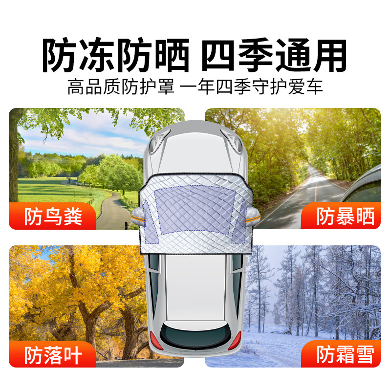 百亿补贴:巨木汽车前挡风玻璃遮雪挡防晒遮阳挡冬天用防冻防霜罩防雪罩盖布车衣 通用【SUV车】真三窗加厚带防盗条加收纳袋