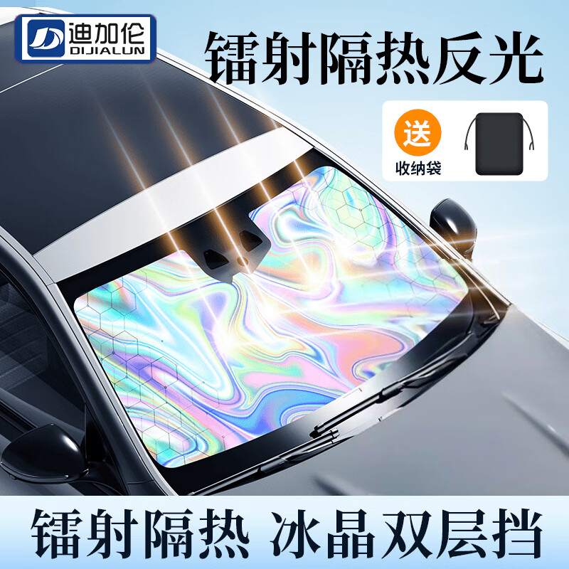 迪加伦镭射钛银胶汽车遮阳挡防晒隔热车内前挡遮光罩车载遮阳伞遮阳挡板