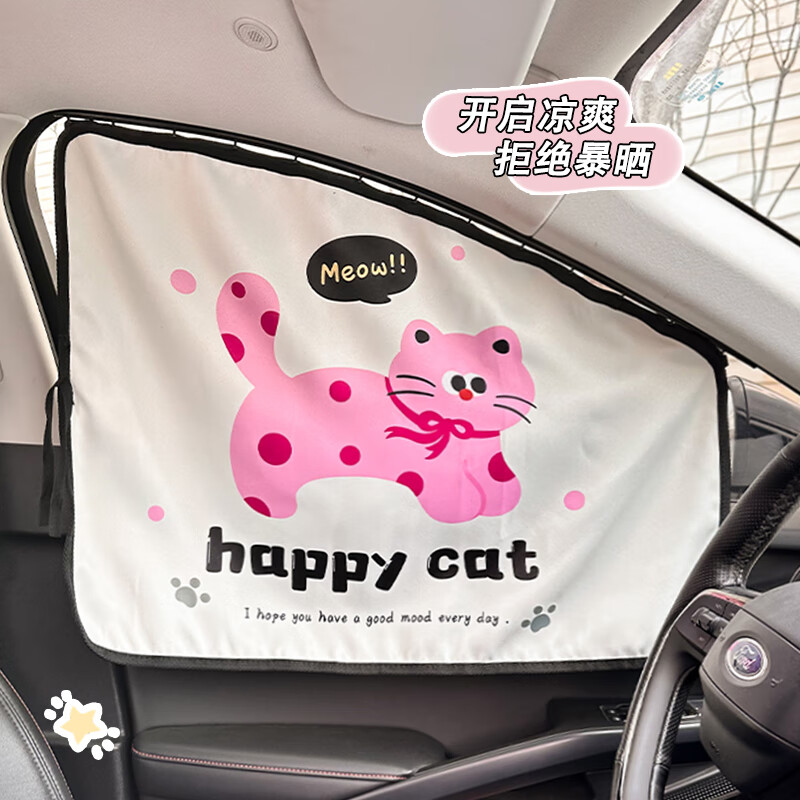 迪加伦可爱猫咪汽车窗帘夏季儿童防晒车用隐私帘创意遮阳挡窗帘