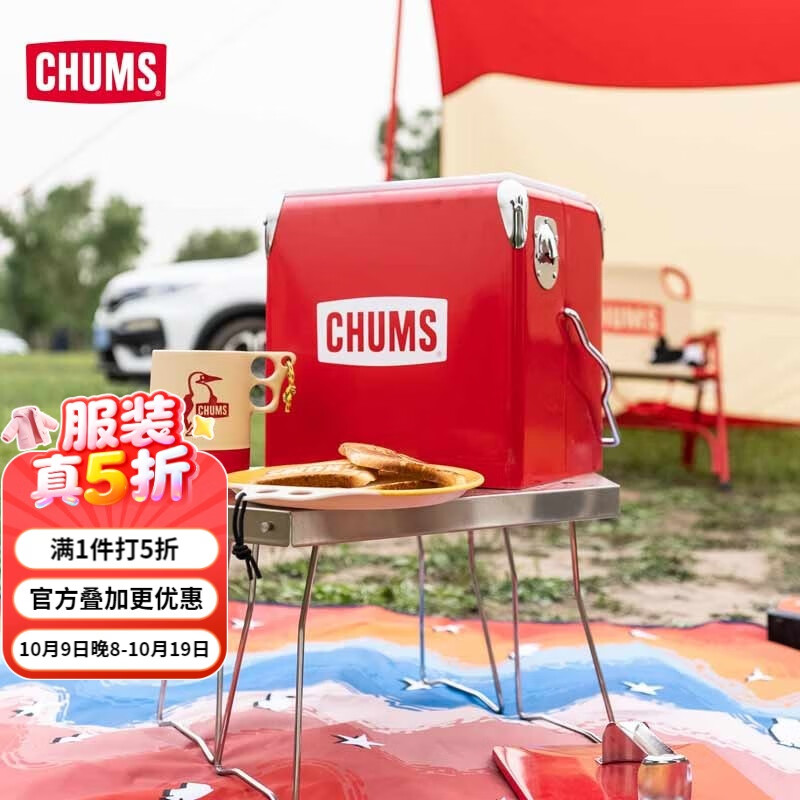 CHUMS洽洽鸟 露营户外 野餐复古钢制保温车载手提冰桶冷却箱保温箱 复古红色R001(12L) 均码