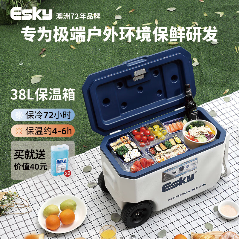 esky保温箱户外露营拉杆箱车载食品保鲜箱户外冷藏箱海钓箱38L