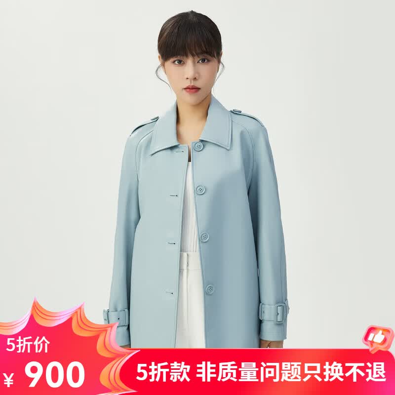 哥弟真的好(GIRDEAR)女装宽松系带绵羊皮风衣式皮衣外套女A400493 浅蓝 S (2码)