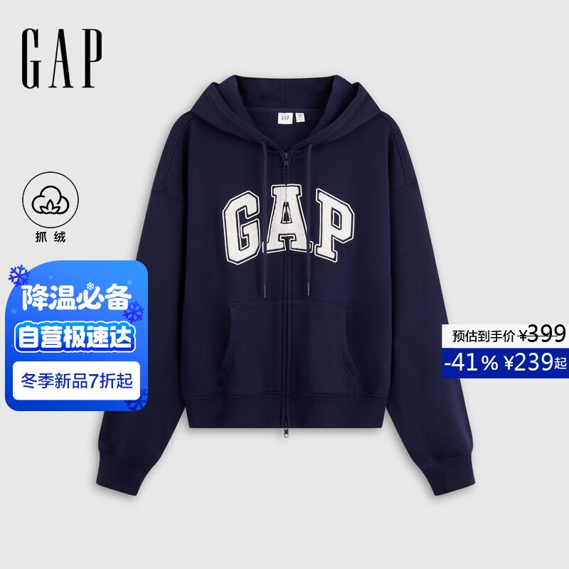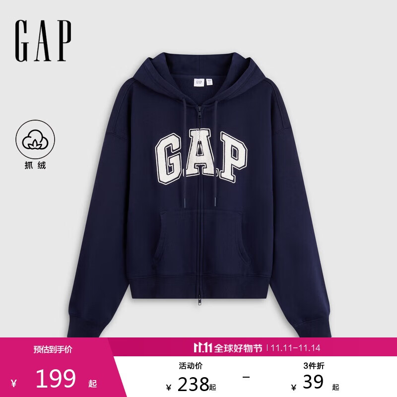 盖璞 Gap女装秋季款天鹅绒大G刺绣logo连帽卫衣休闲外套637173
