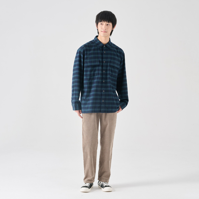 无印良品 MUJI 男式 法兰绒口袋衬衫 男士长袖衬衣外套格子空调衫