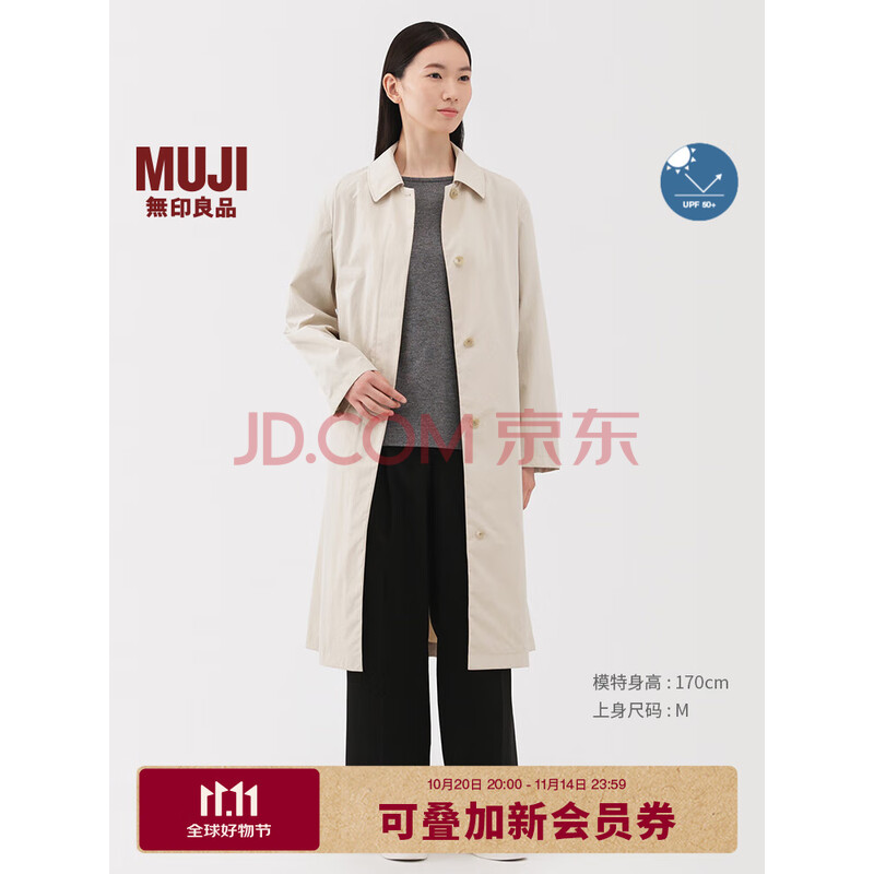 无印良品(MUJI)女式不易沾水防紫外线立领大衣防晒衣服女款25年早秋风衣外套女装 象牙色 M (160/84A)