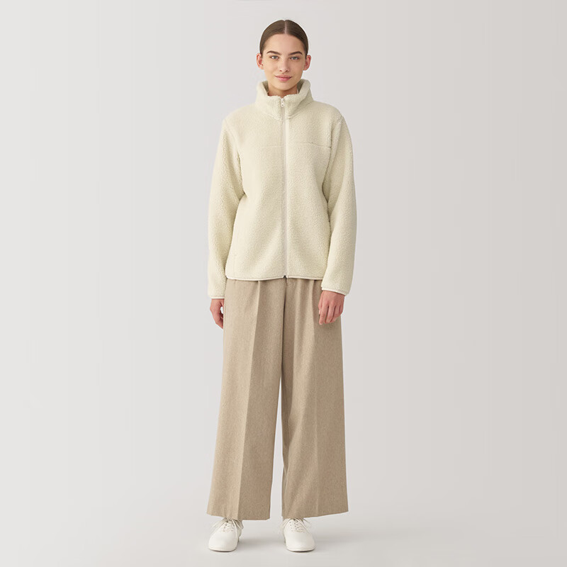 无印良品(MUJI)女式 长毛抓绒 夹克 女外套秋冬款 女装 外衣 BB2QIA4A 象牙色 S (155/80A)