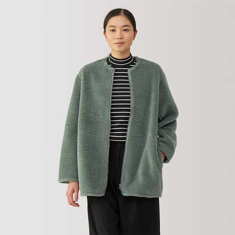 无印良品(MUJI)女式 长毛抓绒 大衣 长袖秋冬款 羊羔绒外套外衣 女装 BB2QPA4A 浅绿色 XL (165/92A)