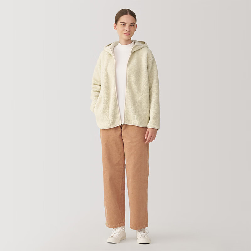 无印良品(MUJI)女式 长毛抓绒 大衣 女外套BB2QPA4A 象牙色5A M