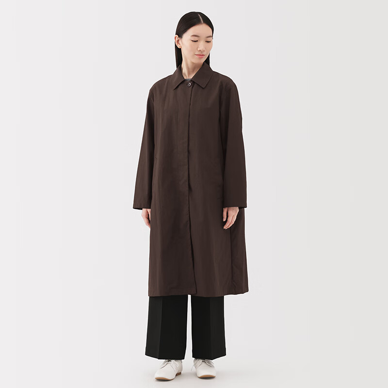 无印良品(MUJI)女式不易沾水防紫外线立领大衣防晒衣服女款25年早秋风衣外套女装 深棕色 L (165/88A)