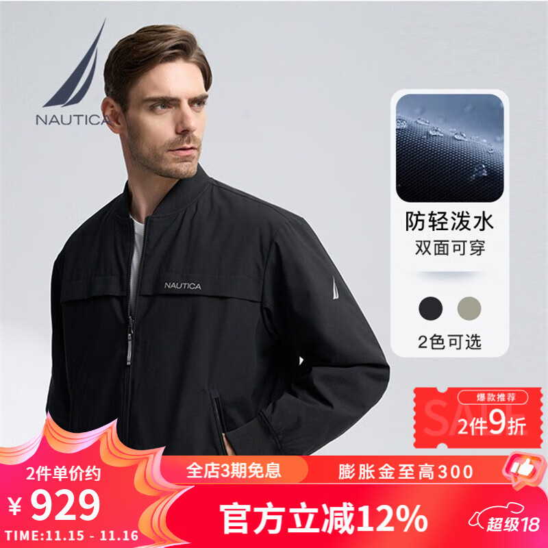 诺帝卡(NAUTICA)【商场同款】男装秋冬款易打理防轻溅水两面穿厚外套棉服男JO2312 黑色0TB(223) XL