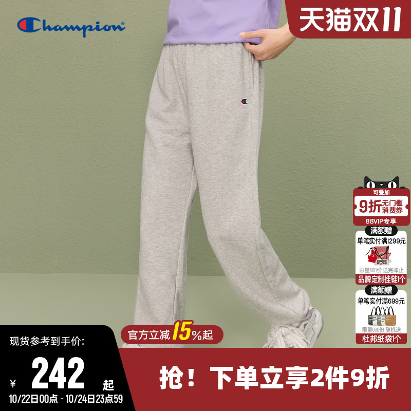 Champion冠军卫裤女25秋季新款直筒束脚长裤刺绣小Clogo休闲裤子