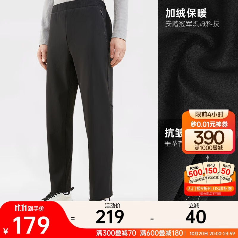 安踏冠军全天候系列 防泼水裤子加绒商务通勤长裤男冬季152340504