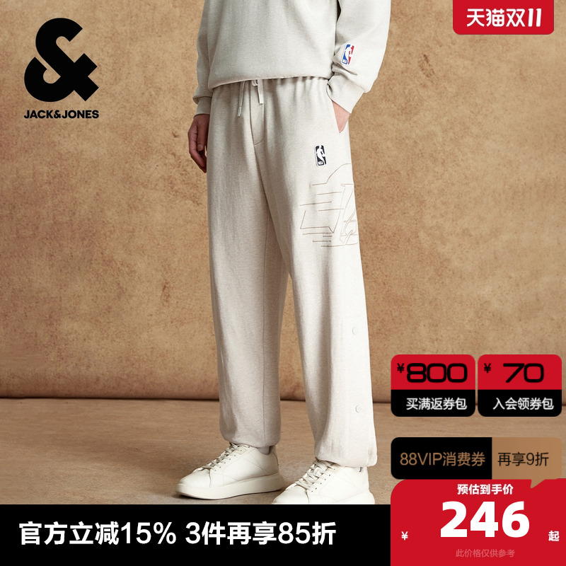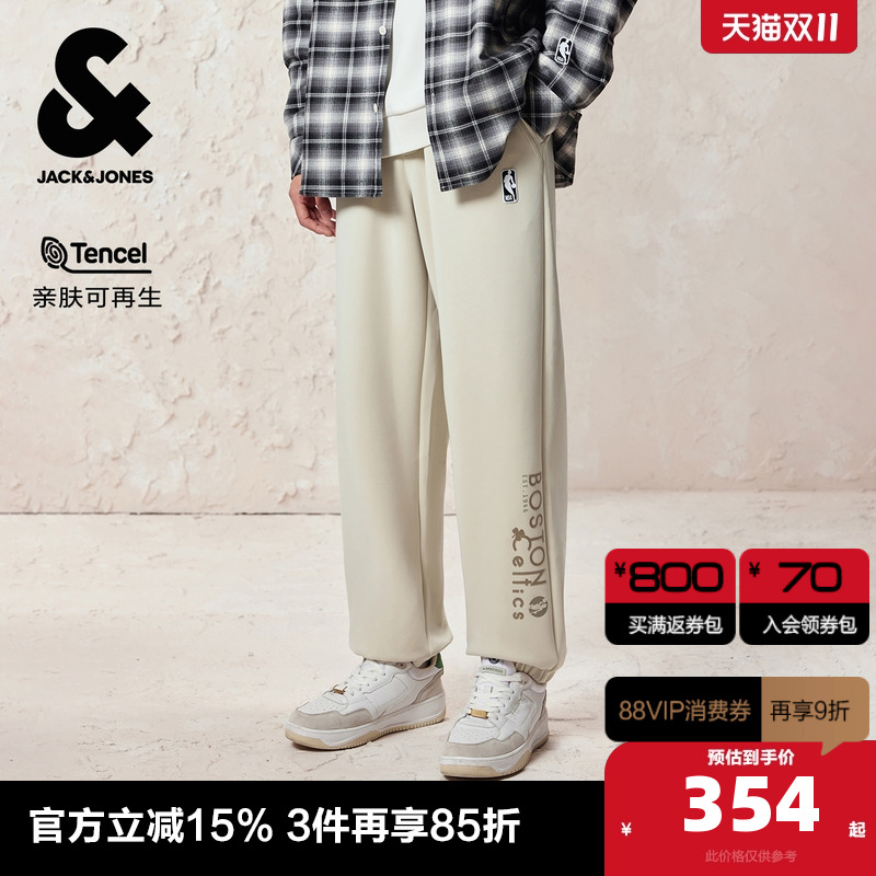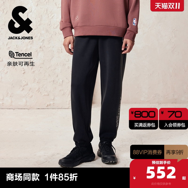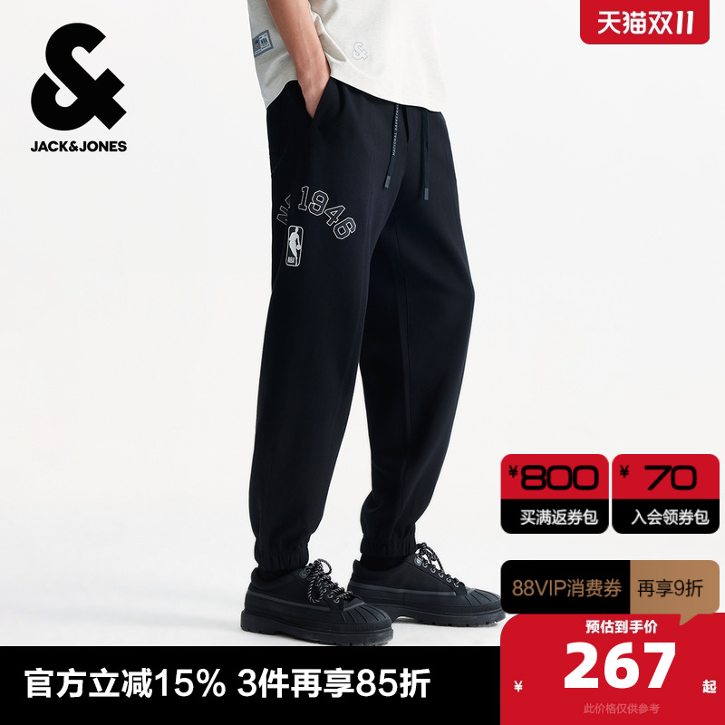 E43纯黑色 28 杰克琼斯NBA联名款男装秋季新款松紧宽松束脚休闲运动卫裤长裤子