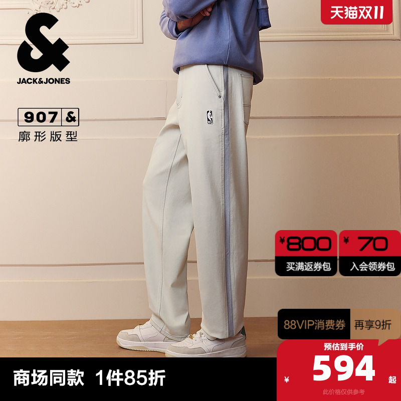 A01象牙白 28/30 杰克琼斯奥特莱斯NBA联名男装牛仔裤秋季新款简约贴布宽松裤子