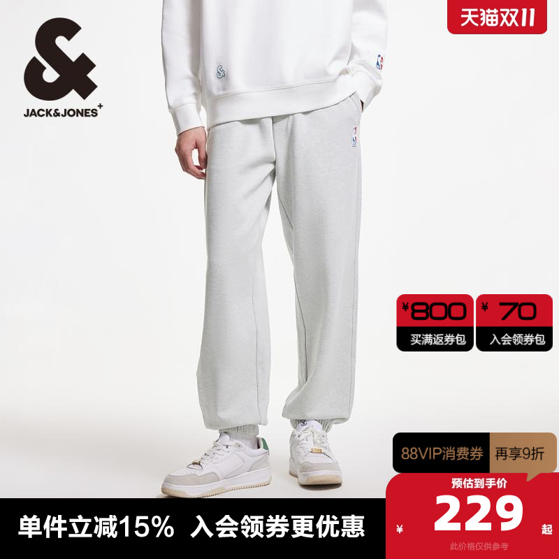 G41浅花灰色 175/80A 杰克琼斯outlets春季NBA联名运动宽松束脚裤休闲长裤卫裤子男装