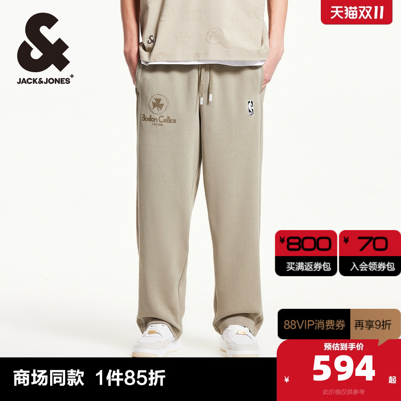 E11卡其色 28 杰克琼斯奥特莱斯男装秋季卫裤NBA联名款字母刺绣口袋长裤裤子