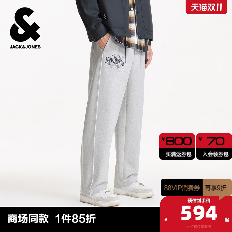 GH1浅花灰 28 杰克琼斯男装NBA联名款秋季新款字母印花拼接宽松直筒卫裤长裤子