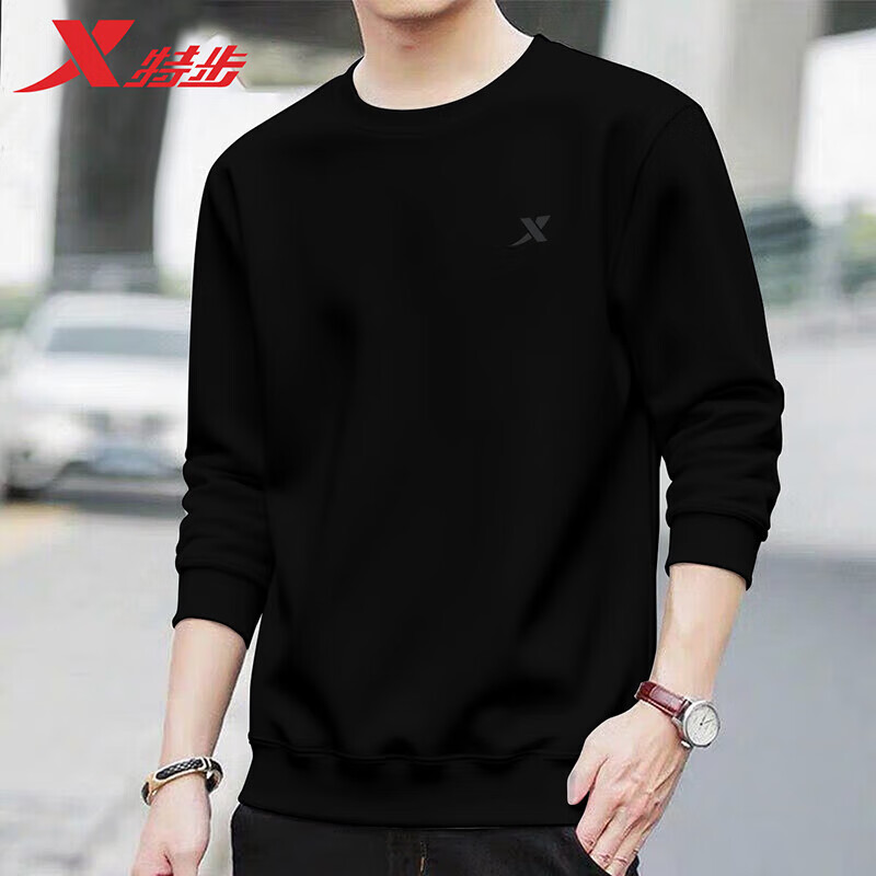 特步(XTEP)钜惠运动套头卫衣情侣百搭新款学生上衣男子上衣裤子潮流运动裤 黑-0186(卫衣-男) L