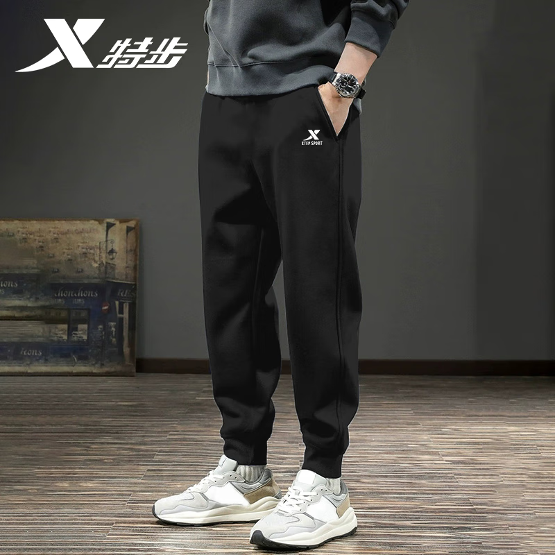 百亿补贴:特步加绒运动裤子男舒适保暖运动长裤子男束脚裤子