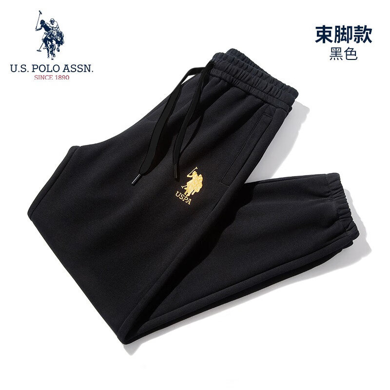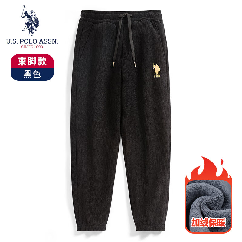 U.S. POLO ASSN.保罗卫裤男秋季新款潮流男裤宽松加绒保暖运动裤男透气休闲裤子 黑色【束口】 M