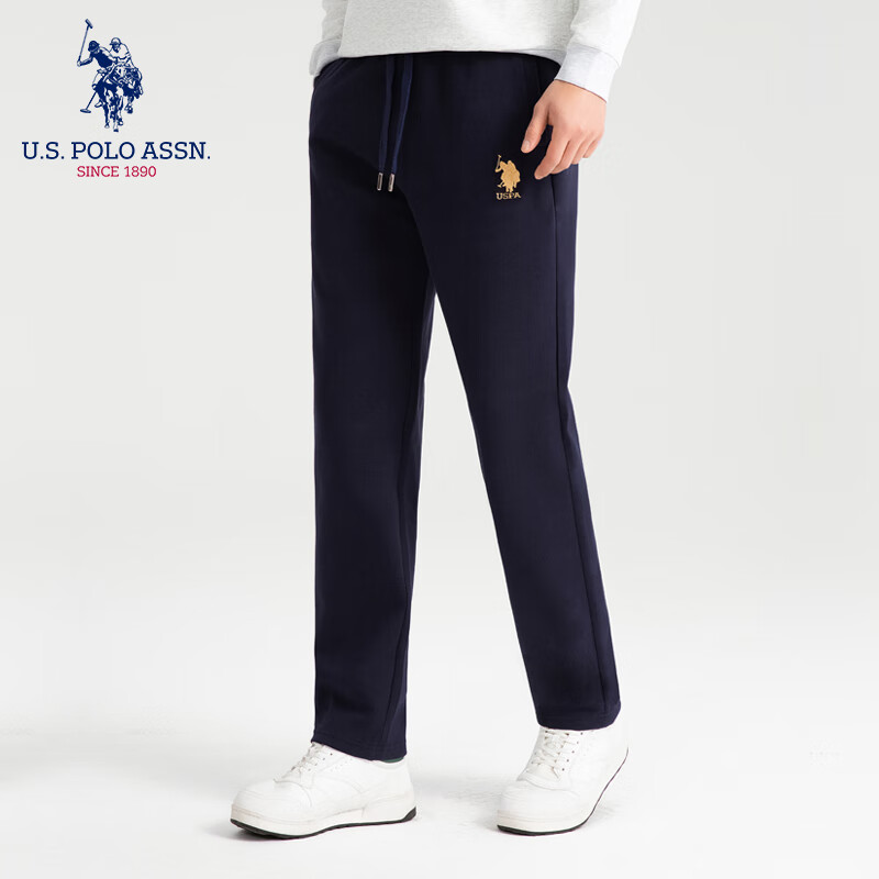 U.S. POLO ASSN.保罗卫裤男秋冬季休闲百搭运动裤男舒适长裤保暖裤子 黑色(平口)626A 4XL (180-200斤)