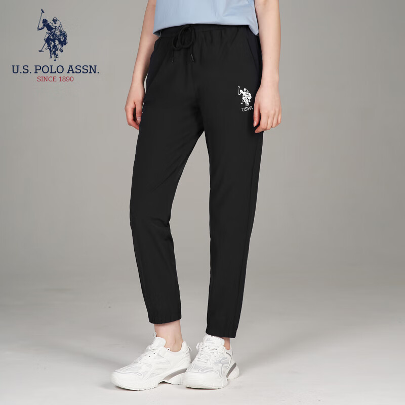 U.S. POLO ASSN.US保罗休闲裤男裤夏季新款束脚运动裤男宽松透气卫裤男士裤子男 黑色(束脚款) M (100-120斤)
