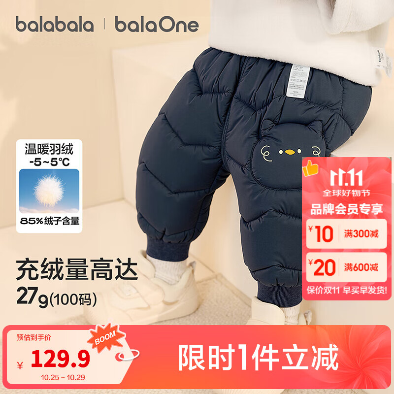 巴拉巴拉童装婴儿羽绒裤男童长裤女童裤子冬装保暖裤宝宝高腰护肚萌趣可爱 深蓝猫猫-灰鸭绒 209425108207 90 cm-充绒量23g