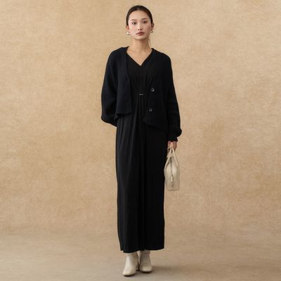 百亿补贴:西町村屋新中式连衣裙女装冬季新款竹节设计感V领OP裙子